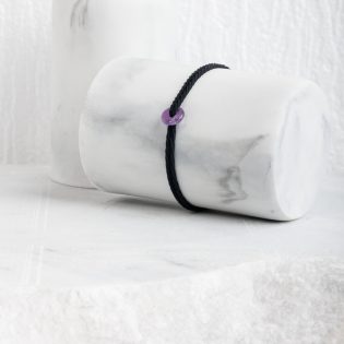 Βραχιόλι κηδεμόνα με λίθο Αμέθυστου (μωβ) που μειώνει τη λαιμαργία και ενισχύει την πνευματική προστασία απέναντι στο φόβο.